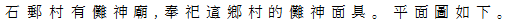 石郵村に儺神廟があり、この村の儺神仮面を祀る。平面図を示す。