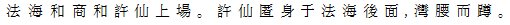 1 法海和尚、許仙出る。許仙は和尚の後ろに身を隠すように腰をこごめる。