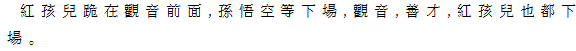 8 紅孩児、観音の前に跪く。孫悟空以下退場。観音、善財、紅孩児も退場。