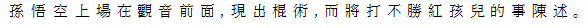 4 孫悟空、観音の前に出て、棒術を示し、紅孩児には勝てない、と訴える。