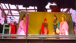 福建省福州生れと伝わる陳十四(陳靖姑)は、浙江南部でも、雨水順調、妖怪退治で地域の安寧を守る女神として、人々に篤く信仰されている。陳十四の生涯と妖怪退治の物語は、清代の小説『閩都別記』(里人可求作)のほか、「娘娘傳」「平妖傳」「霊経」「南游」などと呼ばれて、木偶戯、地方劇、語り物の鼓詞、漁鼓などで演じられ、知らない人がいないほど広く親しまれている。 福建と境を接する山岳地帯に位置する泰順は、古くから「木偶の郷」と呼ばれ、人形芝居が盛んな地域で、特に旧正月には、あちこちの廟で、糸操りの「娘娘傳」が上演される。 この劇は、信仰と深く結びついていて、必ず女神像の前(無ければ形代を祀る)で上演し、女神登場の場面では、線香を供え、霊符を燃やす。人形遣いは、上演中は精進潔斎する。 「娘娘傳」は13段、7日7晩で上演される。 観音の髪の毛が誤ってこの世に落ちて蛇の精になった。蛇の害を防ぐため、観音は2滴の血を滴らすと、雨水となって福州の陳道士の妻の口に入り、陳靖姑が生まれた。陳靖姑は閭山で修行し、各地の妖怪を退治し、雨水順調、子授けにも霊験あらたかだと信じられ、土地の守護神として篤く信仰される。泉州の洛陽橋建設にまつわる話を始め、多くの民間伝承と結びついて語られるが、猿の妖怪が出てくるこの段は、閩南語地区で特に人気があり、一段だけ演じるときにはこの段が演じられることが多い。 本動画では、第5段「揚州府で妖怪紅毛猴を退治する」の段から一部を公開する。 なお、「中国木偶戯関係写真資料データベース」検索頁で、演目に神仙「娘娘傳」、年月日に新暦「2008年2月19日」と入力すると、この動画の画像をまとめて見られるので、参照いただければ幸いである。 |